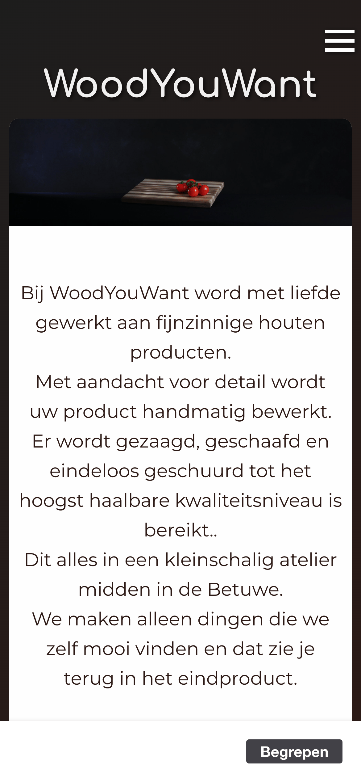 Website WoodYouWant – mobiele versie